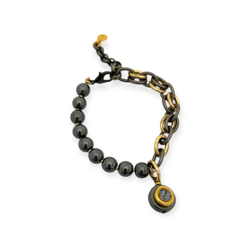 Apyrankė su hematitu ir Swarovski kristalų pakabuku
