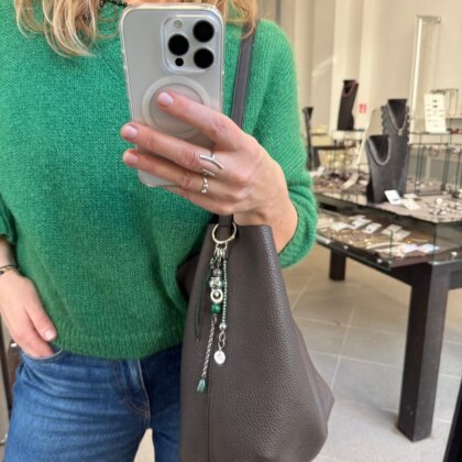 Ryškus, bet elegantiškas – šis vėrinys alsuoja spalvomis ir charakteriu. Auksu ir juodintu metalu dengta grandinėlė derinama su natūraliais akmenimis – marmuru, natūraliais upiniais perlais, koralu ir Swarovski kristalais – suteikia papuošalui žaismingumo ir unikalumo. Pagrindinis ilgis – 42 cm, bet su papildoma 6 cm grandinėle jį lengvai pritaikysit pagal savo stilių – nešiokite arčiau kaklo arba laisviau. Tobulas akcentas saulėtoms dienoms arba norint įnešti gyvybės aprangai.