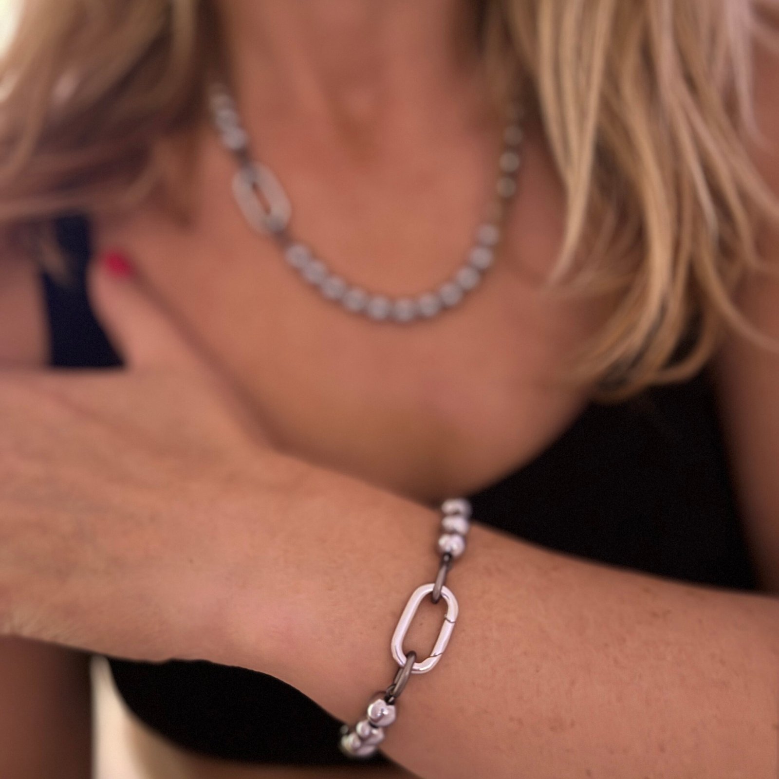 Hematite bracelet and necklace set with carabiner detail
