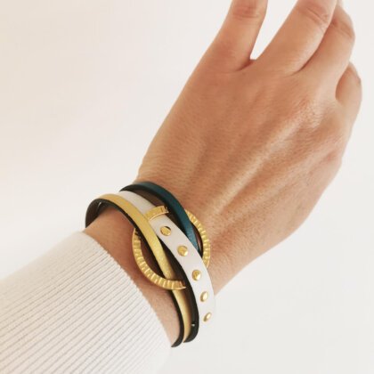 Ši natūralios juodos spalvos odos apyrankė dvigubai apvyniojama aplink ranką sukuria masyvų vaizdą pasitelkiant tik vieną aksesuarą. Puikiai tinka ir derinti su kitomis apyrankėmis, tačiau ir viena atrodo išskirtinai.