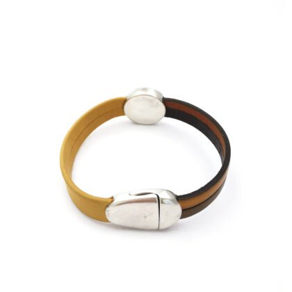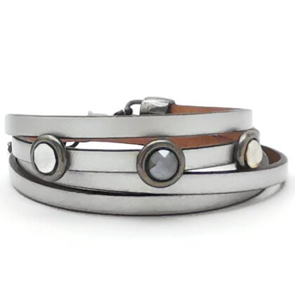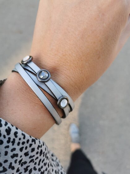 Išskirtinė apyrankė iš hematito, auksu dengtos lavos ir Swarovski perlų – subtili prabangos ir kontrasto dermė. Hematito spindesys, aukso žvilgesys ir perlų švelnumas kuria elegantišką akcentą kiekvienai dienai. Puikiai atrodo tiek viena, tiek derinama su kitomis apyrankėmis