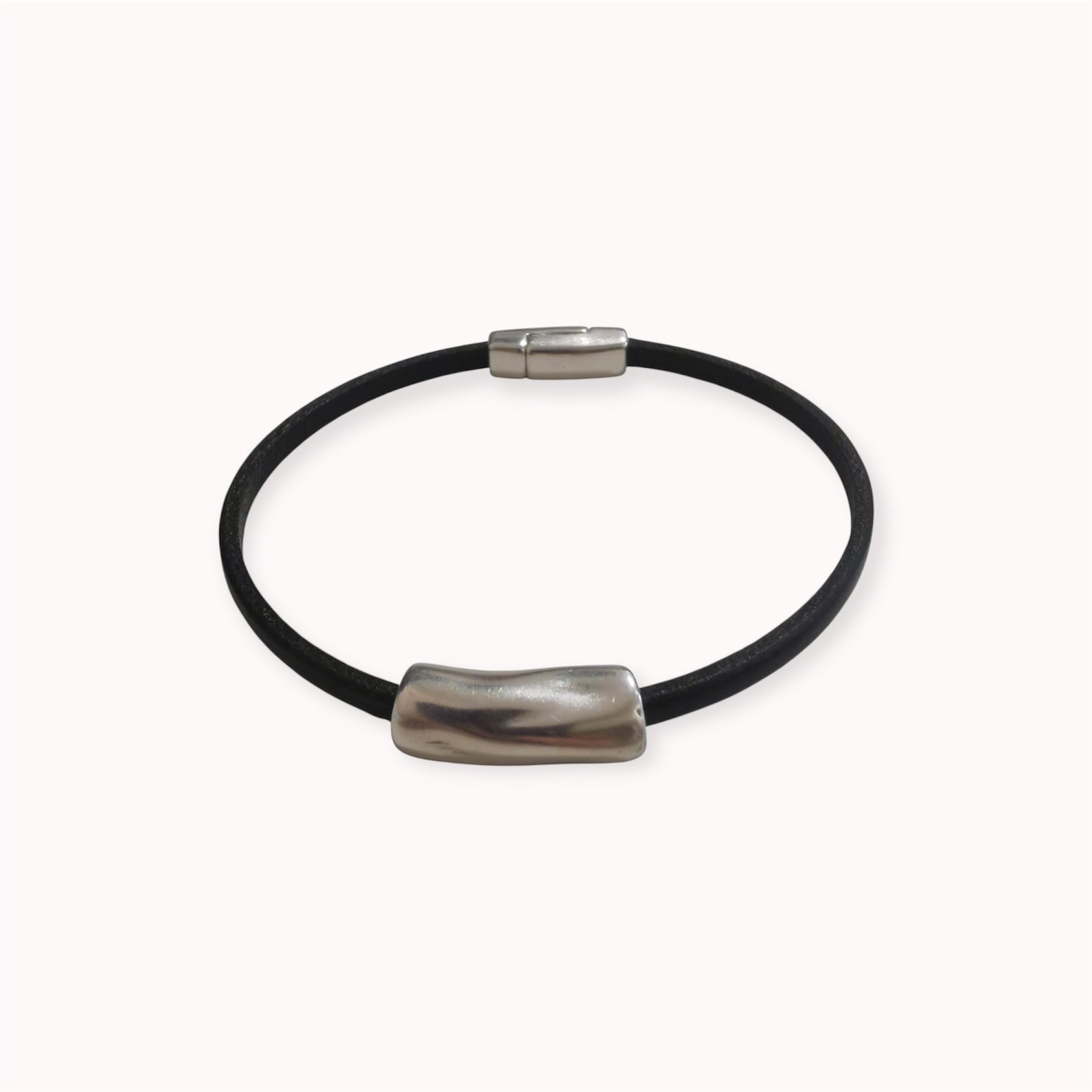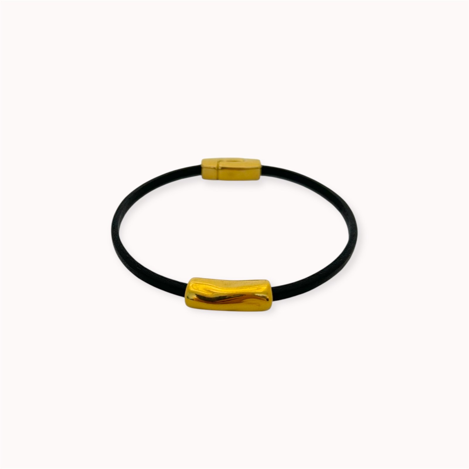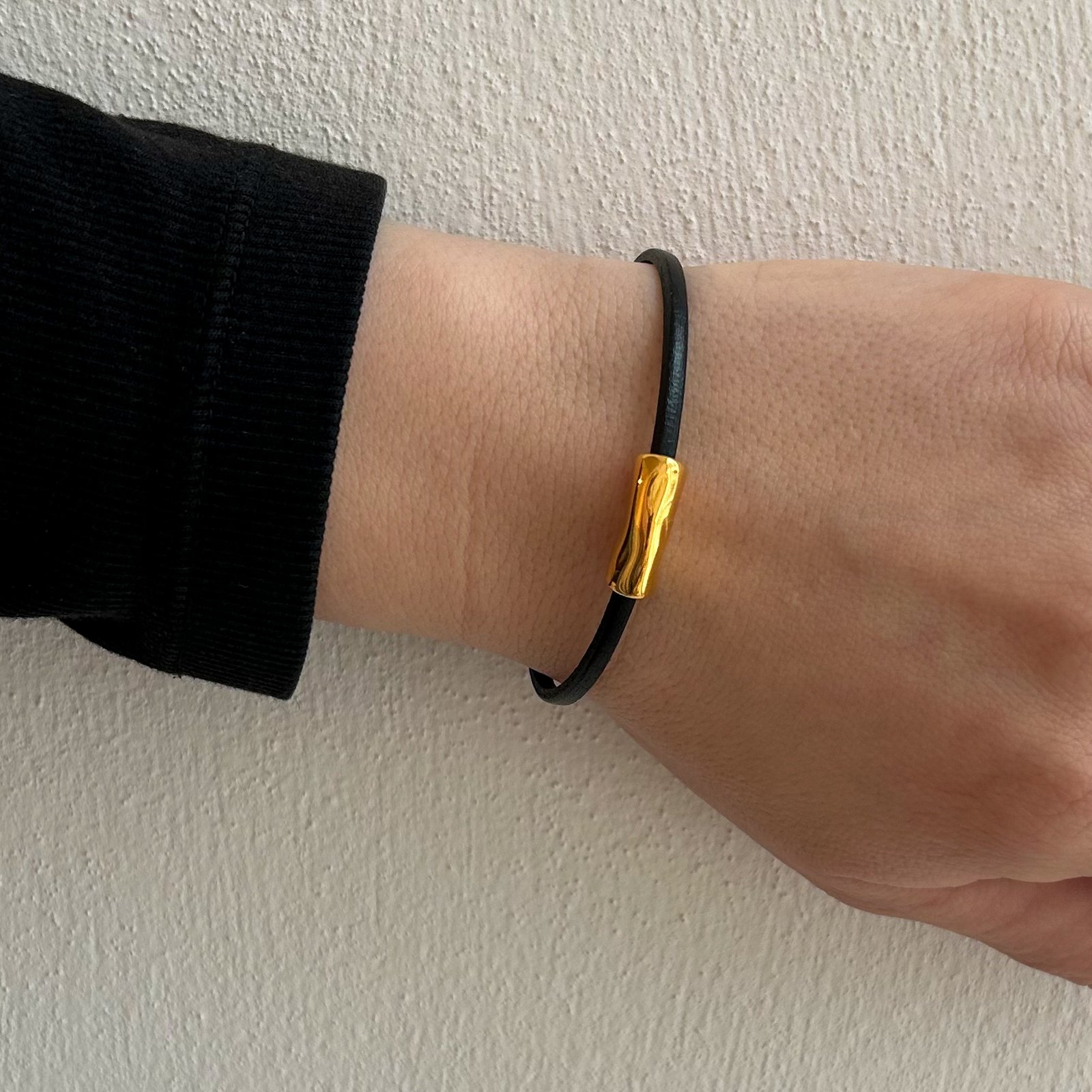 A minimalist bracelet crafted from genuine black leather, designed to move with you. Magnetic clasp – easy to put on. Gold or silver plated brass detail adds a little bit of spark. Simple, versatile, and timeless – your go-to piece for everyday style.