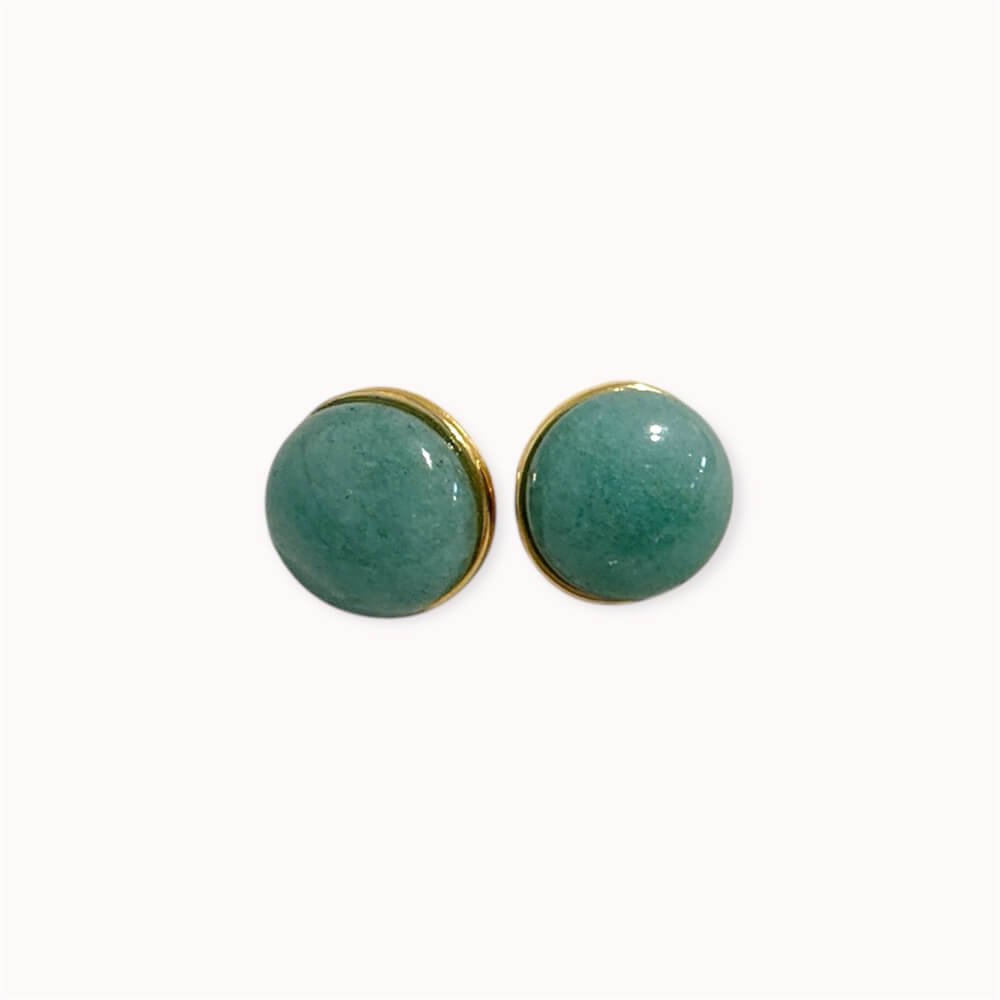 This minimalistic gold plated brass earrings are the epitome of elegance and simplicity. Featuring a lustrous aventurine as its centerpiece, it’s a timeless accessory for any occasion. Perfectly balanced between contemporary style and classic charm, these earrings are a versatile addition to your jewelry collection.