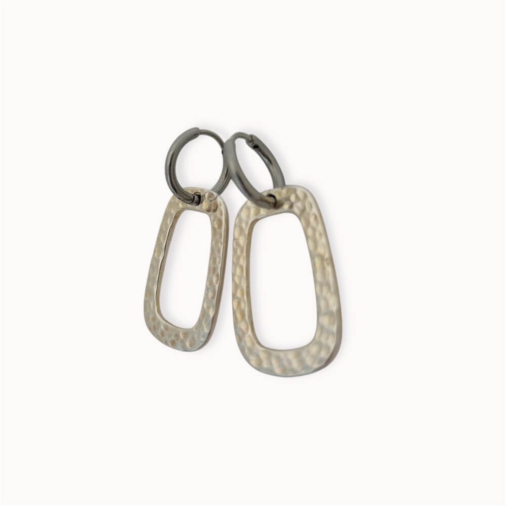 Expressive but easy to style earrings featuring textured details. The minimalistic stainless steel hoop adds structure, while the irregular hanging shapes create movement and a subtle play of light.