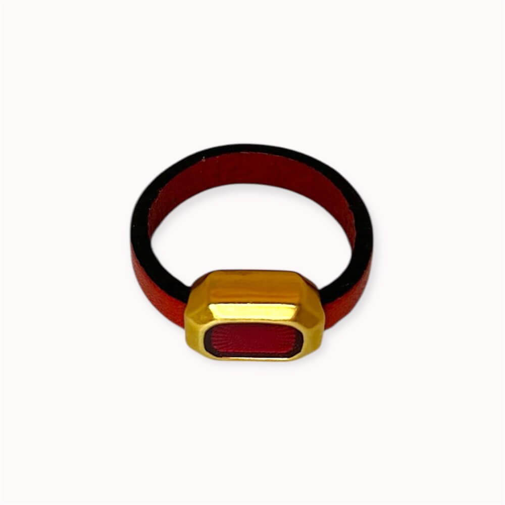 This stylish red natural leather ring features an enamelled accent that adds just the right amount of sparkle. With 5 mm heigth, it’s perfect for stacking with other rings or wearing solo when you want understated charm. A modern twist with a touch of glam—what’s not to love?