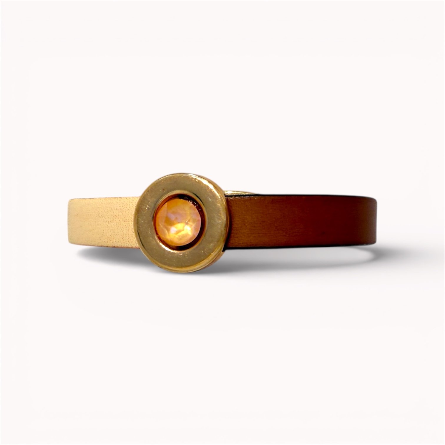 A minimalist bracelet crafted from genuine brown leather, designed to move with you. Magnetic clasp – easy to put on. Swarovski crystal settled in gold plated brass detail adds a little bit of spark. Simple, versatile, and timeless – your go-to piece for everyday style.