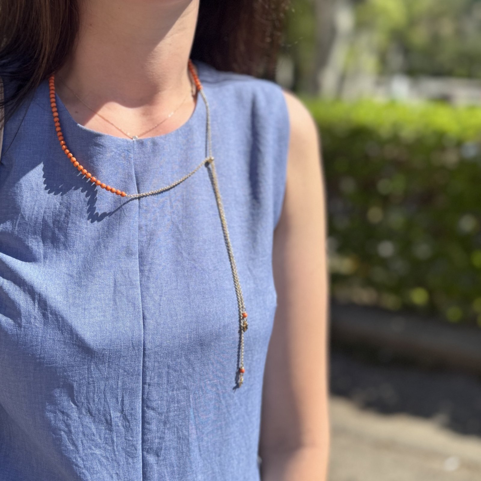 Playful elegance in every detail. This 90 cm necklace is assembled from soft glass beads and features two playful star pendants pendants. The sliding detail allows you to adjust the length and wear it in multiple ways.