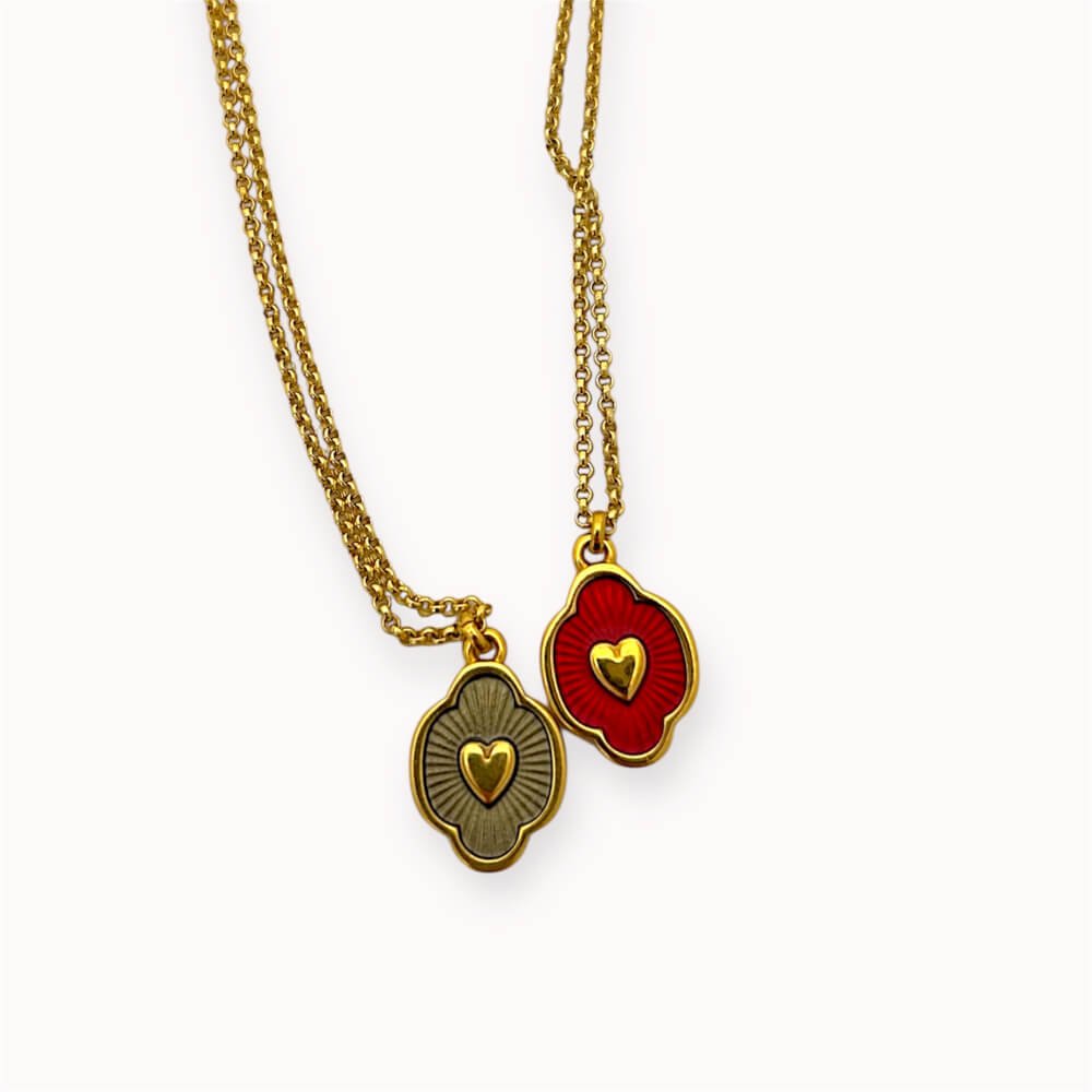 Small but full of meaning. A subtle statement for both everyday moments and special occasions. This gold-plated brass necklace with a red enamel heart pendant is a minimalist yet meaningful piece.