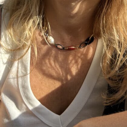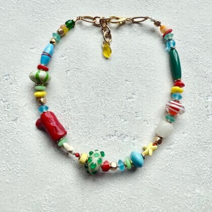Rudo obsidiano, hovlito ir lavos apyrankė